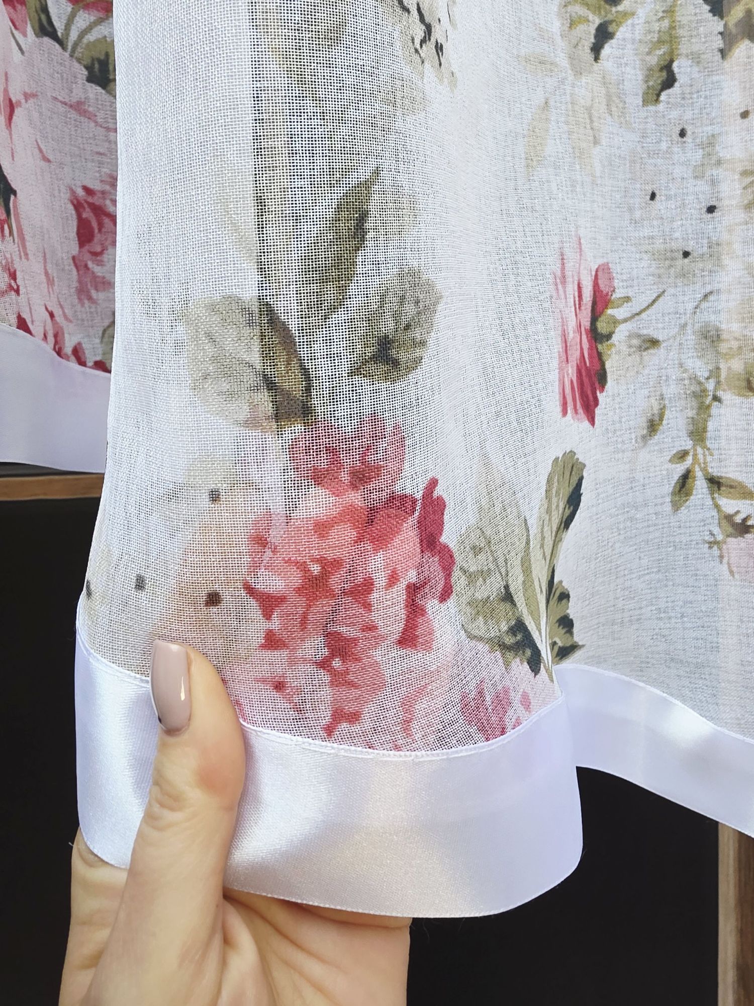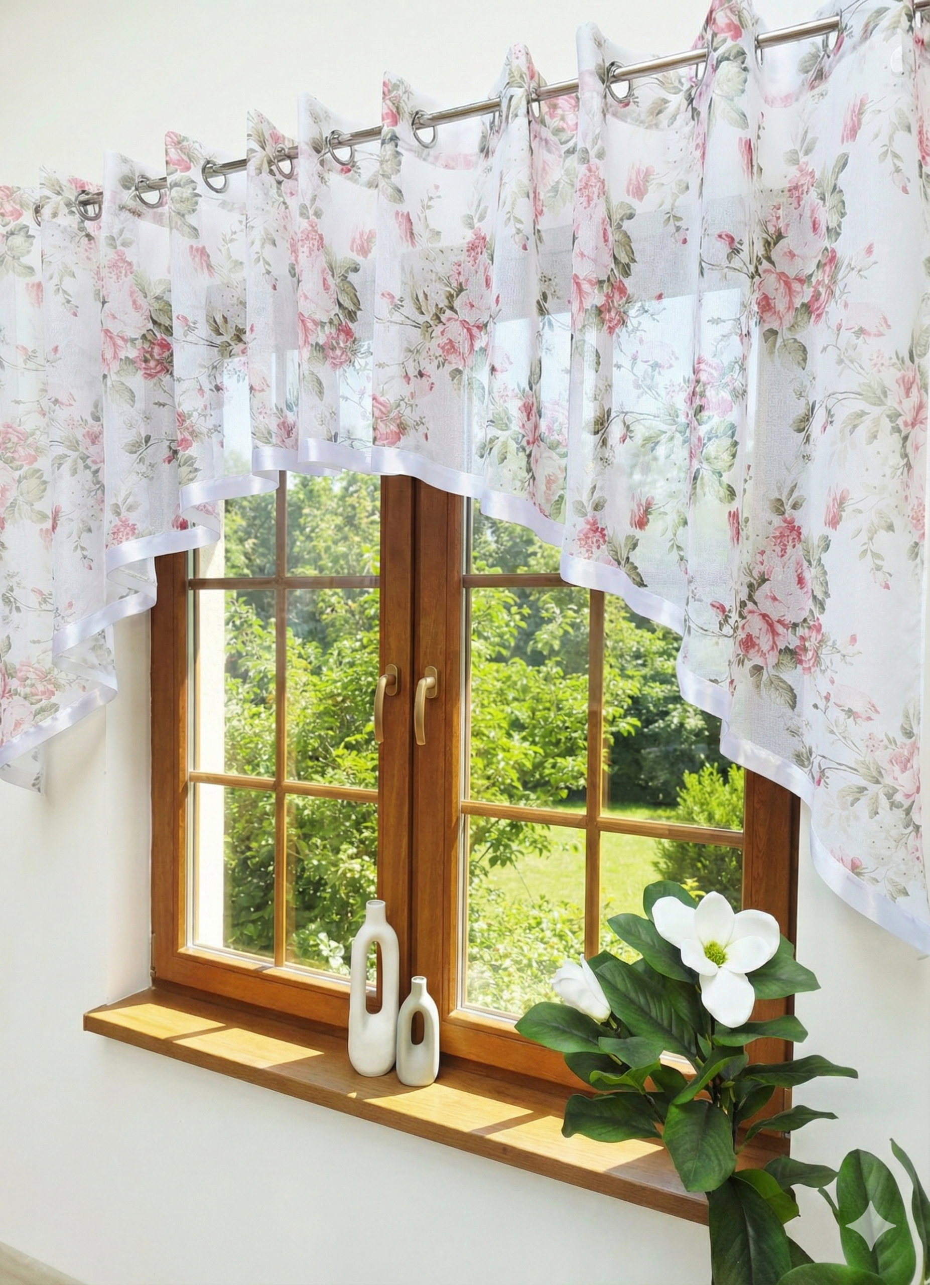 Przedstawiamy firankę ALIS – wyjątkową dekorację okienną, która łączy w sobie klasyczną elegancję z motywem florystycznym. Wykonana z wysokiej jakości poliestru, firanka charakteryzuje się subtelnym, kwiatowym wzorem w odcieniach różu i zieleni, który wniesie do wnętrza powiew świeżości i przytulny, romantyczny klimat.