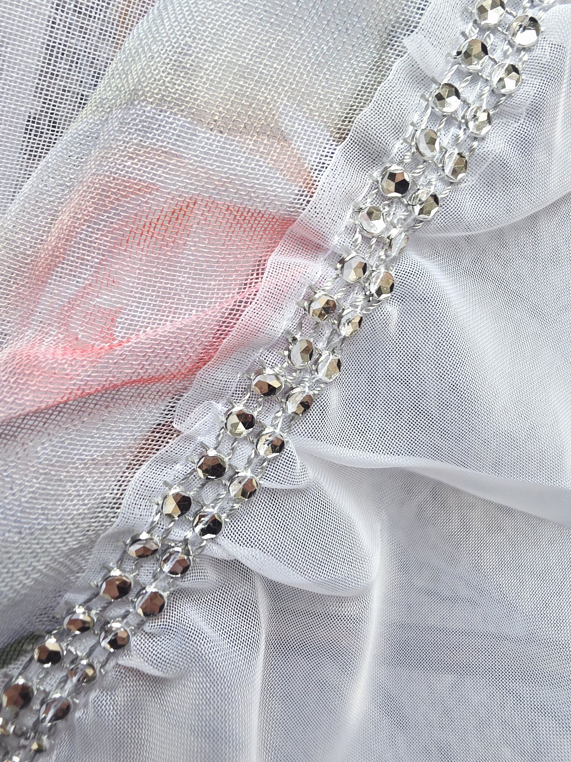Odkryj urok i lekkość, jaką wniesie do Twojego wnętrza FIRANA AIKO , firanka z subtelnym, florystycznym wzorem z dodatkiem cyrkonii.