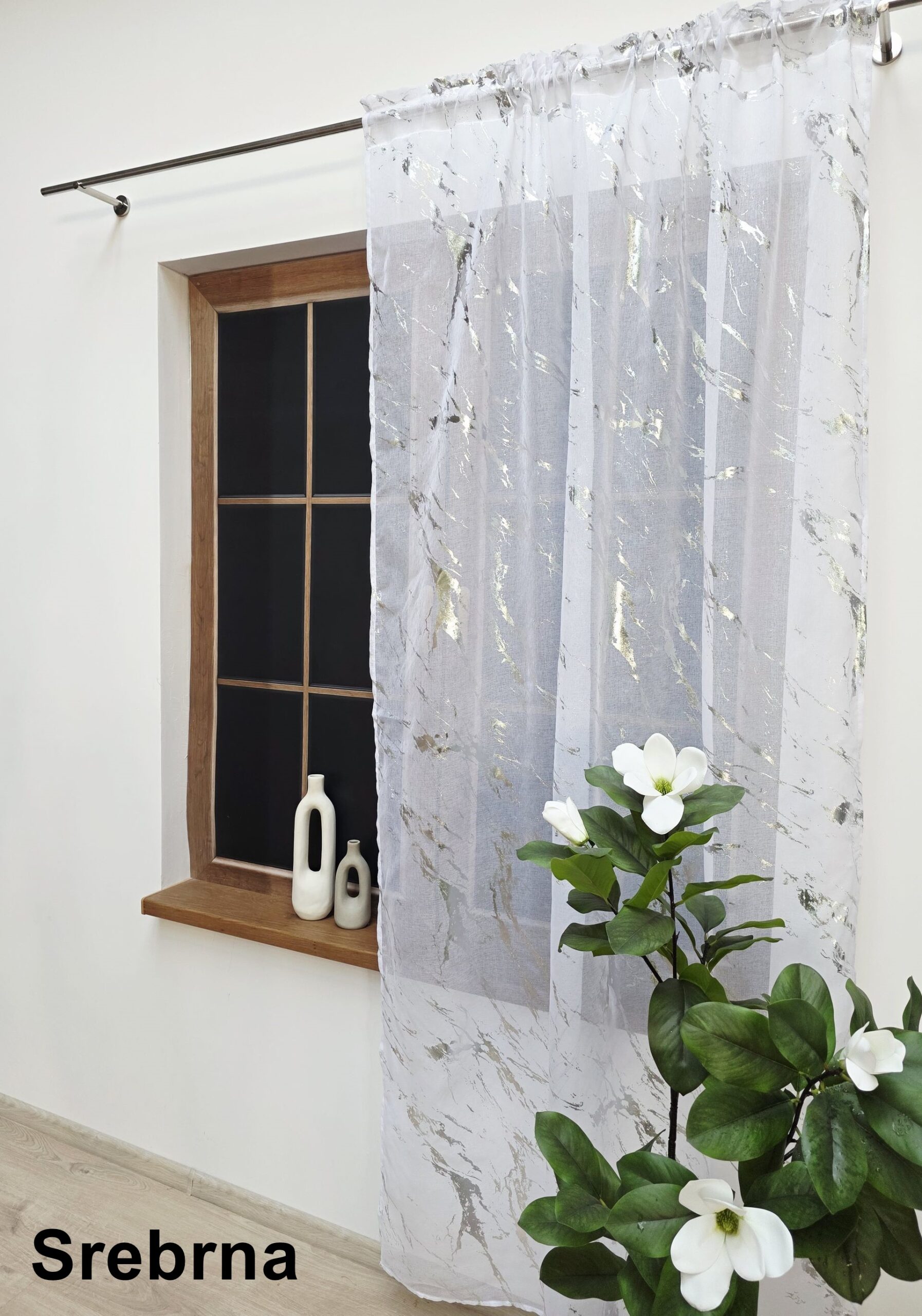 Wprowadź do swojego salonu powiew świeżości dzięki firanie NEAT. To wyjątkowa dekoracja okienna, która łączy w sobie subtelność klasycznego materiału typu sable z odważnym, nowoczesnym wzornictwem inspirowanym strukturą szlachetnego marmuru.