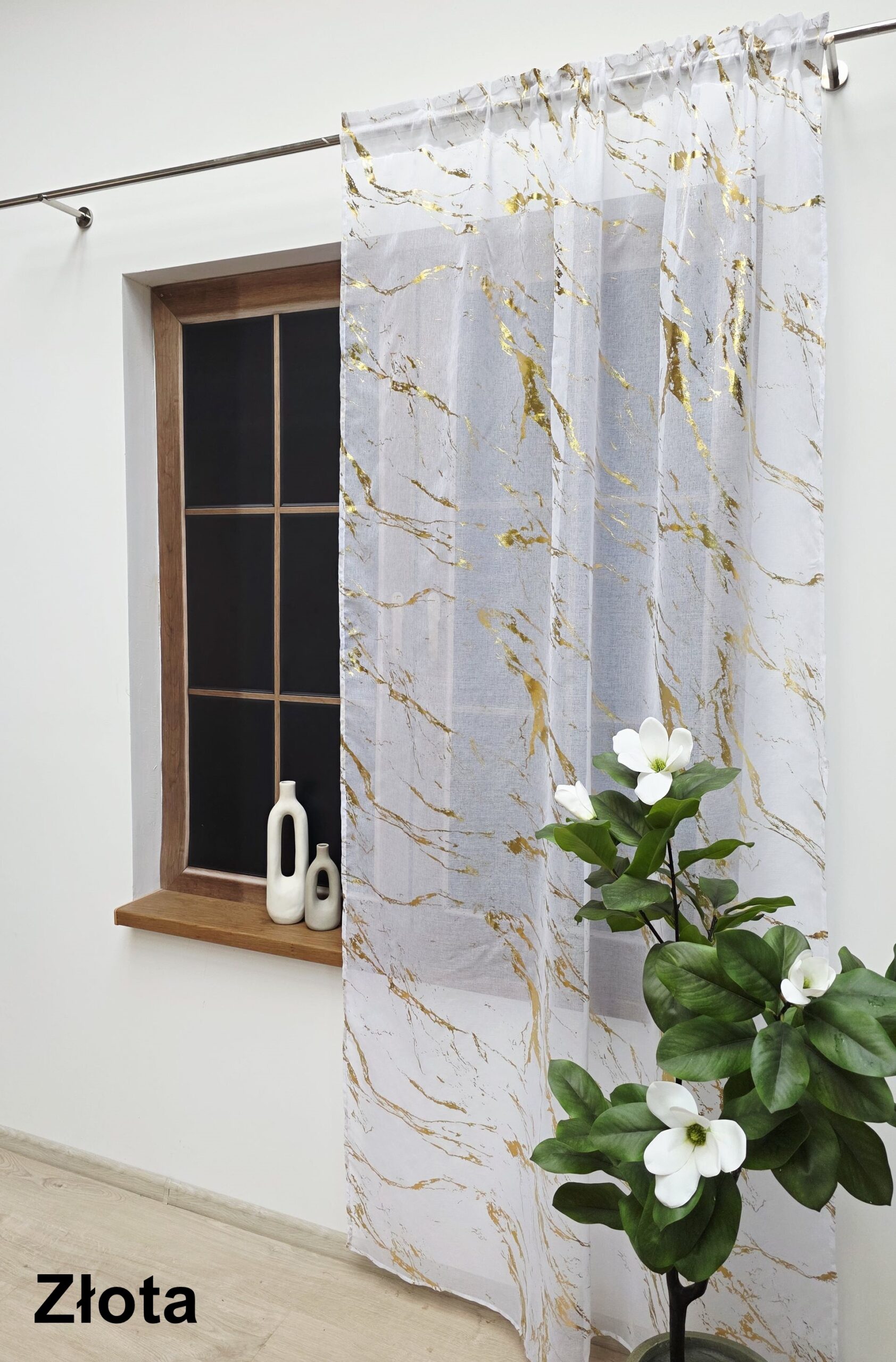 Połyskujący nadruk (dostępny w kolorze złotym lub srebrnym) imitujący marmuru nadaje wnętrzu głębi i nowoczesnego charakteru. To idealny wybór do stylów Glamour lub Klasycznych.