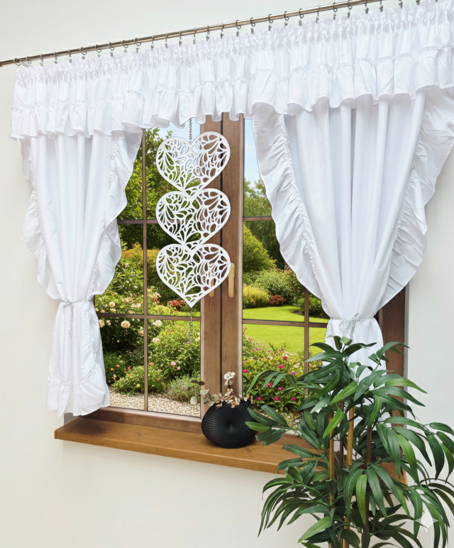 Wyobraź sobie poranek, w którym delikatne promienie słońca miękko przenikają do Twojego wnętrza, a Ty budzisz się w otoczeniu nieskazitelnej bieli i harmonii. Firanka Nexo o imponujących wymiarach 400×160 cm to coś więcej niż tylko osłona okna – to zaproszenie do świata subtelnej elegancji i domowego ciepła, które natychmiast odmieni charakter Twojego salonu lub sypialni. Jej romantyczny design z misternymi falbanami sprawia, że każde spojrzenie w stronę okna staje się chwilą czystej przyjemności dla oka.