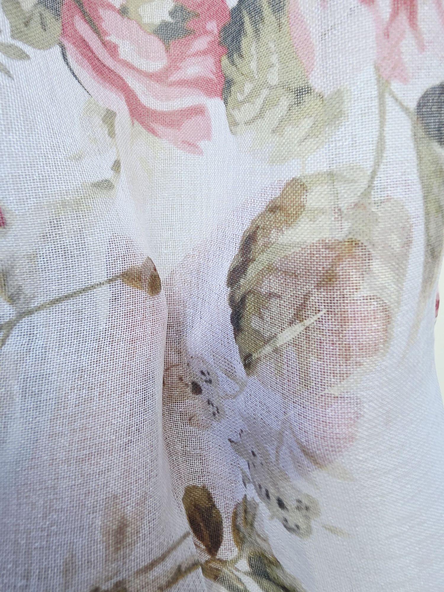 Delikatna tkanina (typu woal lub szyfon) jest łatwa w pielęgnacji, dobrze się układa i zapewnia prywatność, zachowując przy tym lekkość.