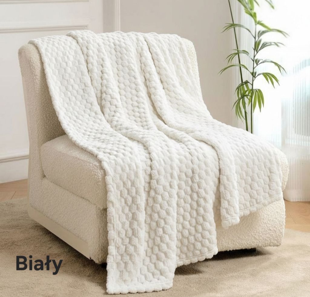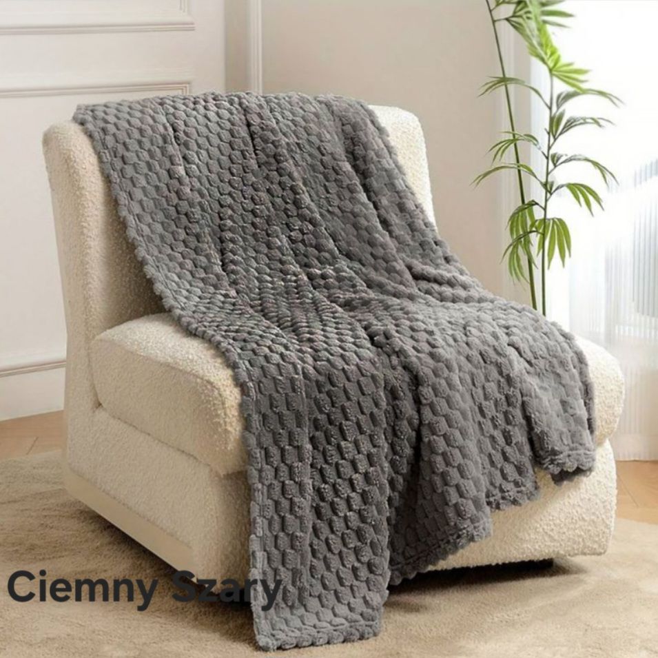 Zanurz się w świecie niezrównanej miękkości i elegancji dzięki naszemu kocowi w pięknej kolorystyce. Ten duży, puszysty splot, o unikalnej wytłaczanej strukturze szachownicy to idealny dodatek do Twojego wnętrza, łączący funkcjonalność z wyrafinowanym designem.