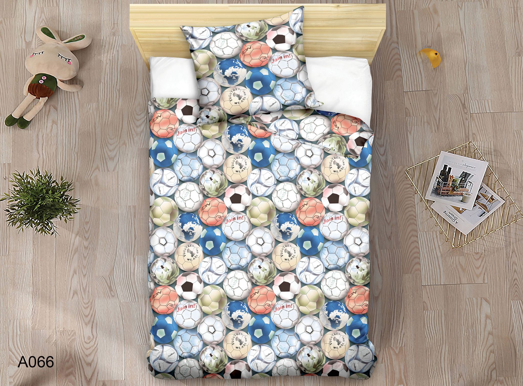 Rozpal pasję do sportu w pokoju Twojego dziecka dzięki naszemu dynamicznemu kompletowi pościeli, który w całości pokryty jest wzorem piłek nożnych! Na pościeli znajdziesz mnóstwo klasycznych biało-czarnych futbolówek, a także piłek w odcieniach niebieskiego, zieleni i pomarańczu, tworząc energiczną i radosną kompozycję. Poszewka na poduszkę również pokryta jest tym samym wzorem, co tworzy spójny i pełen sportowego ducha design. Ta pościel to idealny wybór dla małego fana piłki nożnej, wprowadzając do jego pokoju atmosferę sportowych emocji i zabawy!