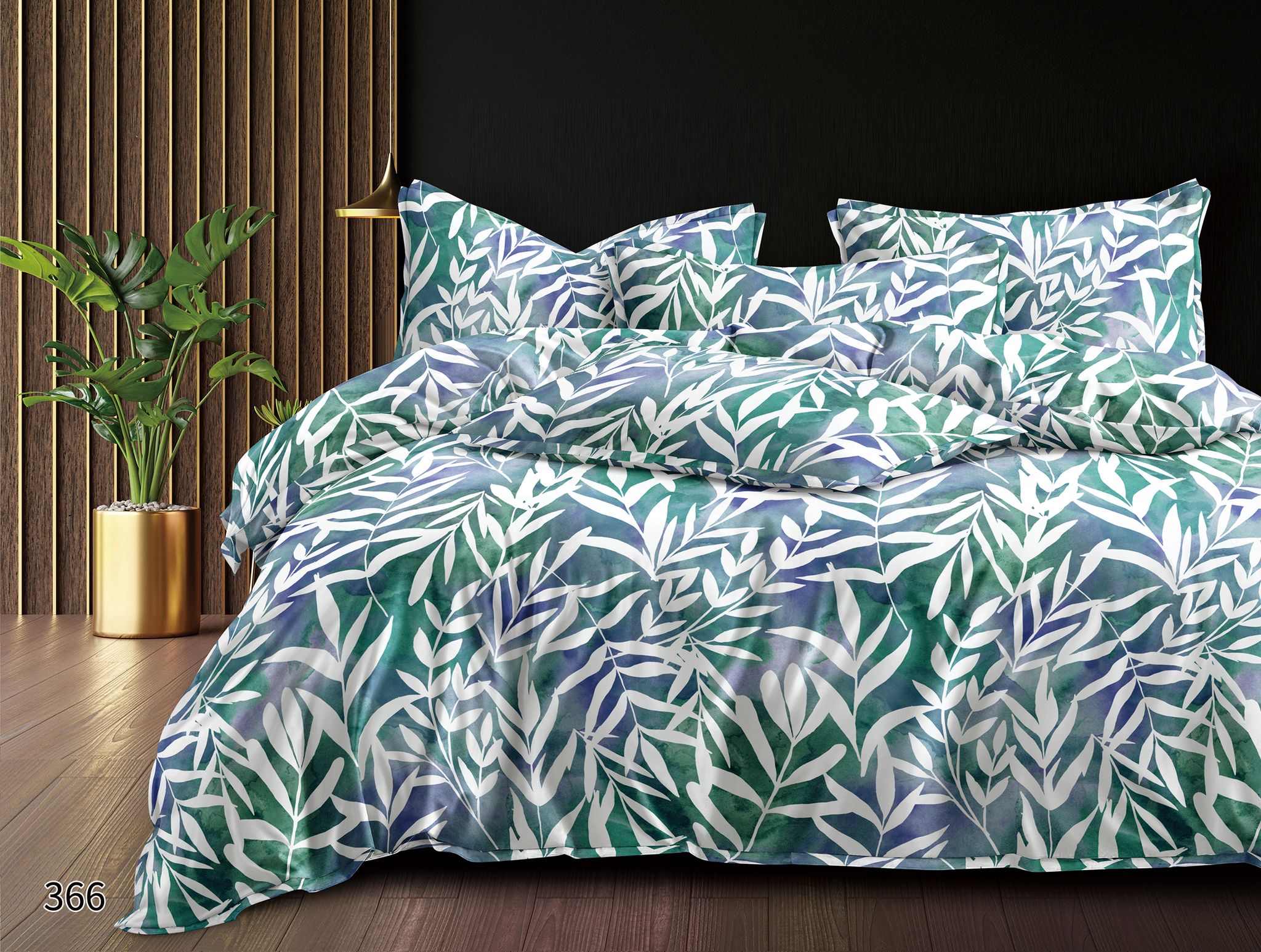 Ten komplet pościeli To idealny wybór dla każdego, kto pragnie wprowadzić do swojej sypialni świeżość, lekkość i nowoczesny akcent inspirowany naturą. Pościel zdobi gęsty, powtarzalny motyw stylizowanych liści, które mienią się w różnorodnych odcieniach: od głębokiej zieleni, przez turkus, aż po chłodny błękit i biel. Dynamiczny układ liści tworzy wrażenie ruchu i świeżości.